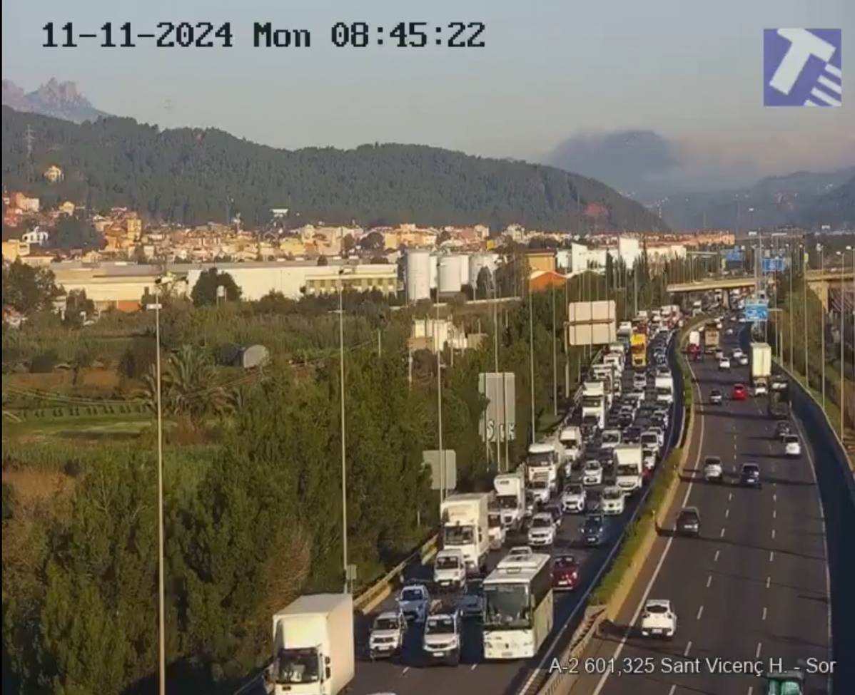 Durante la mañana del lunes se registran largas colas de vehículos que afectan a varios municipios del Baix Llobregat