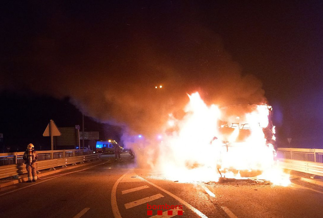 FOTO: Un incendio calcina un autobús en Esparreguera
