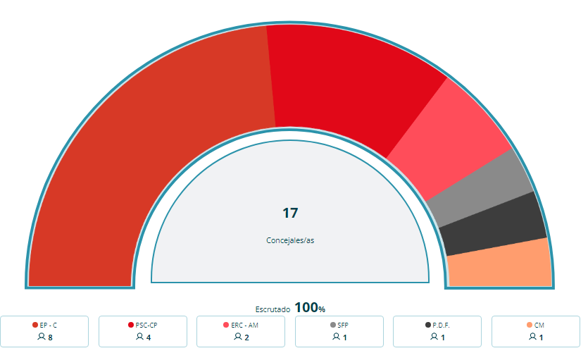 El siguiente partido más votado es el PSC con 4 concejales y le sigue ERC con dos