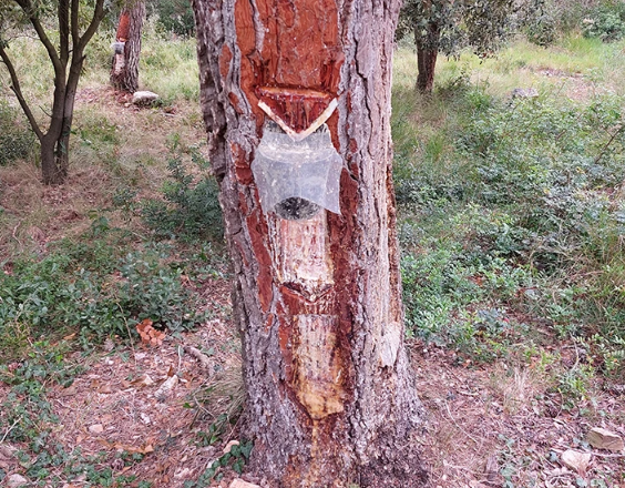 Alumnos del grado de Gestión Forestal y Medio Ambiente del Instituto Rubió y Tudurí, Escuela de Jardinería de Barcelona realizaron una práctica con la empresa situada en Vallirana, Forest Baix SCCL que se dedica a la resinación. Los alumnos contaron con la explicación y acompañamiento de Carlos Delgado, responsable de Forest Baix.