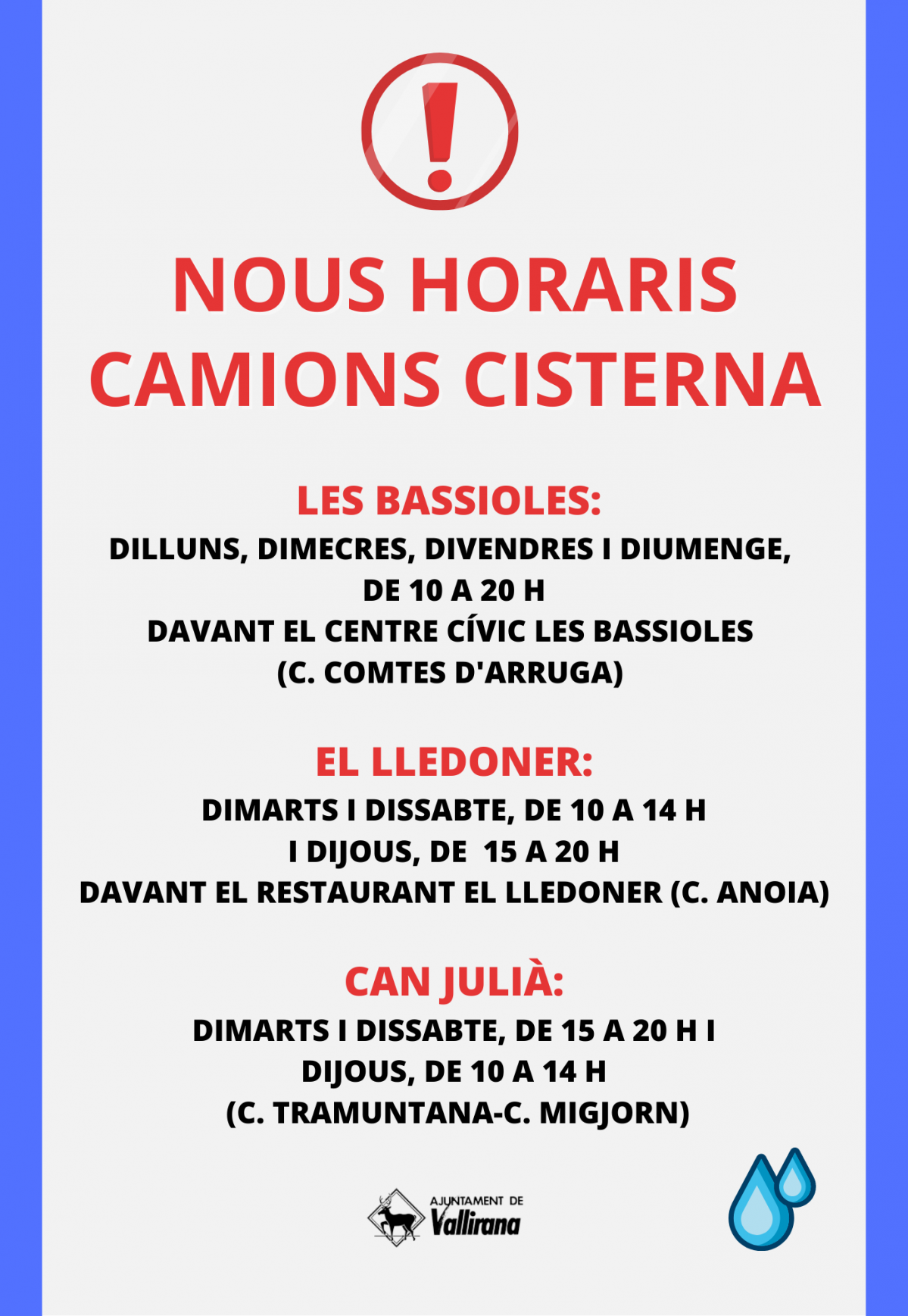 A partir de lunes 3 de julio, se ponen en marcha nuevos horarios de los camiones cisterna, habilidades por los vecinos y vecinas afectados por la problemática de los sulfatos.