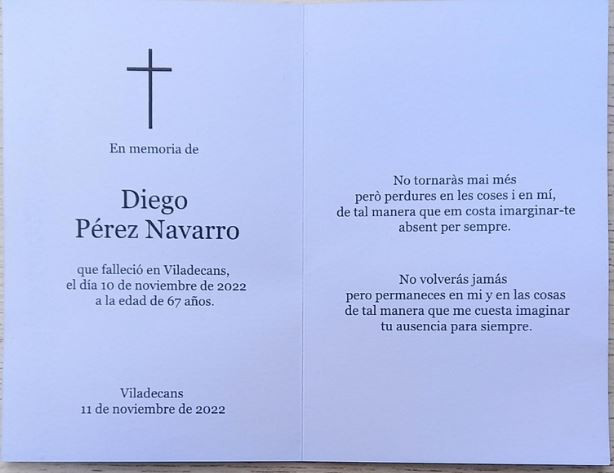 Su pasión por el mar le dirigió a sacarse el titulo de patrón de yate. Disfrutaba contando anécdotas de ese mar que tanto quería. Conversador incansable, Diego se ha ido demasiado pronto cuando aún tenía muchas cosas que hacer. Pero allí donde se encuentre, seguro que seguirá haciendo la vida agradable y planificando proyectos. El mar azul del Mediterráneo estará siempre presente en ese otro lugar del que nunca se vuelve . Todos los que le conocían le van a echar mucho de menos.