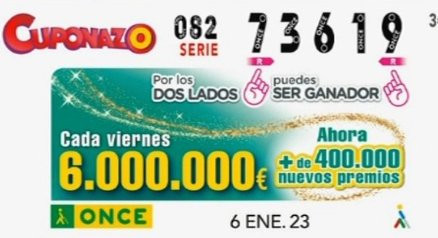 El Cuponazo ofrece cada viernes, un premio mayor de 6 millones de euros al número y serie premiado, y otros 134 premios de 40.000 euros al número.