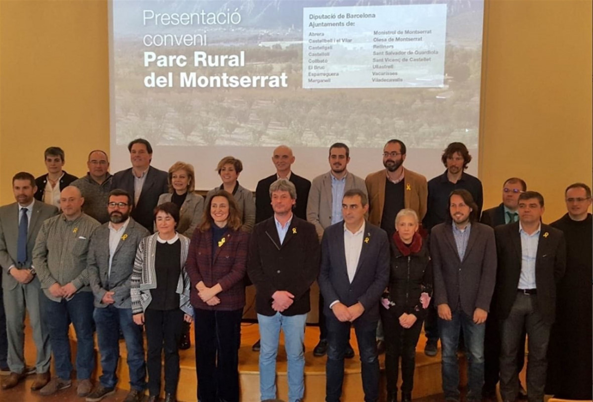 Los responsables de 16 municipios, en la constitución del Parque Rural de Montserrat.