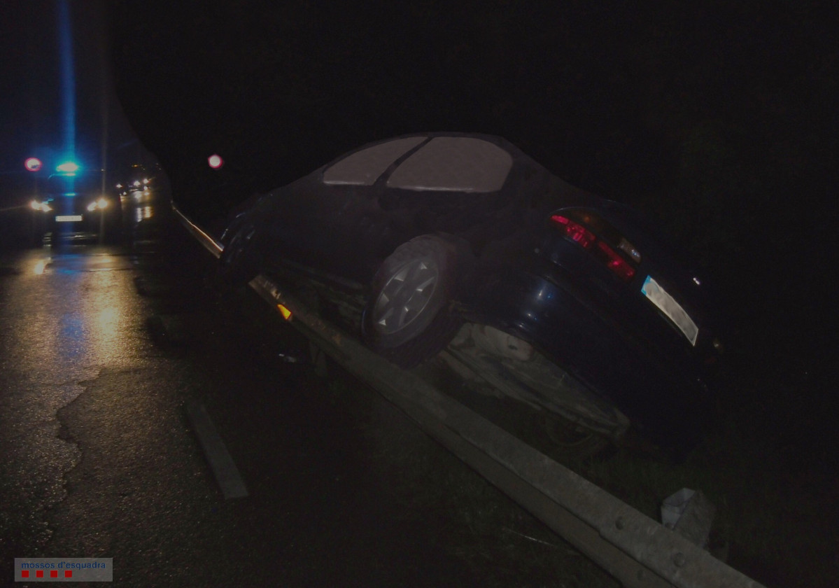 A las 22:00 horas aproximadamente del martes 10 de abril, en el punto kilométrico seis de la carretera BV-1201, en el término municipal de Abrera, el conductor de un turismo sufrió una salida de vía que dejó su vehículo encima de la valla metálica de protección.