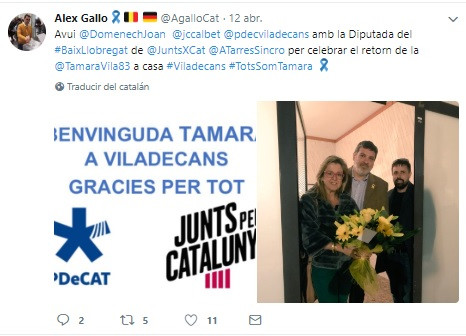 Tamara, cuando volvió a su domicilio después de su viaje a Madrid, tuvo algunas visitas, no muchas. Dos de ellas muy significativas: La diputada Anna Tarres del Junst per Catalunya, Álex Gallo del PDeCAT y Joan Carles Calbet, cercano al partido.