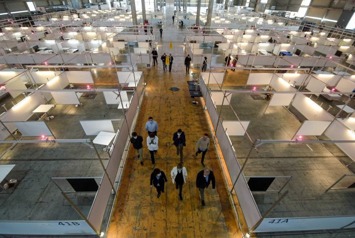 El hospital temporal Feria Salud en L'Hospitalet de Llobregat puede llegar a albergar hasta 2.000 camas