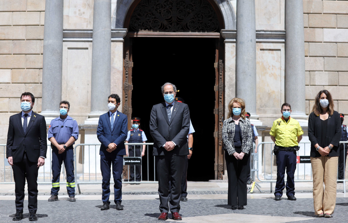 El president de la Generalitat, Quim Torra, también se ha sumado junto a la plana mayor de su Govern al minuto de silencio por el Covid-19. En la plaza Sant Jaume, Torra ha permanecido de pie frente al edificio de la Generalitat junto al conseller de Economía, Pere Aragonés, y la portavoz del Govern, Meritxell Budó, entre otros miembros del Ejecutivo catalán.
