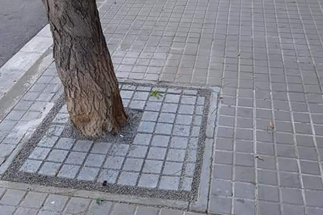 El forat dels escocells es cobreix amb un paviment flexible i permeable que no interfereix en el creixement i la cura dels arbres