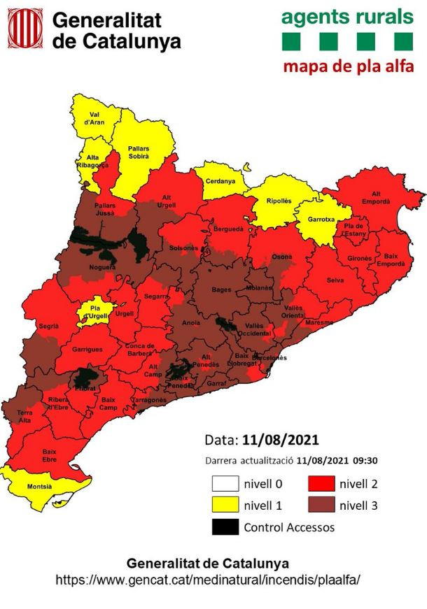 Afegir que, com sabeu, la situació és complicada pel que fa al Perill d’Incendis als nostres massissos, de manera que us podeu trobar sectors amb l’accés tancat o restringit. Aquesta també és una bona raó per valorar si són bons dies per sortir al medi natural i potser posposar per més endavant la vostra activitat prevista.