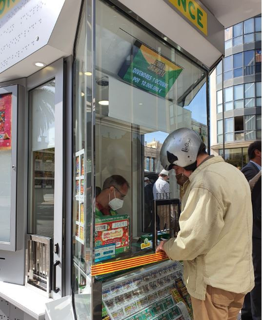 El primer cliente ante el nuevo quiosco de la ONCE en Barcelona/ @Catalunyapress