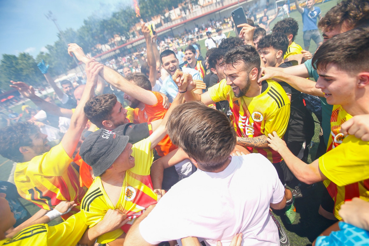 Con el pitido final del colegiado Francesc Puig, el Josep Raich fue invadido por la afición que se mezcló con sus jugadores entre bengalas, cánticos y lágrimas de emoción para celebrar un ascenso histórico del Molins de Rei CF a Primera Catalana.