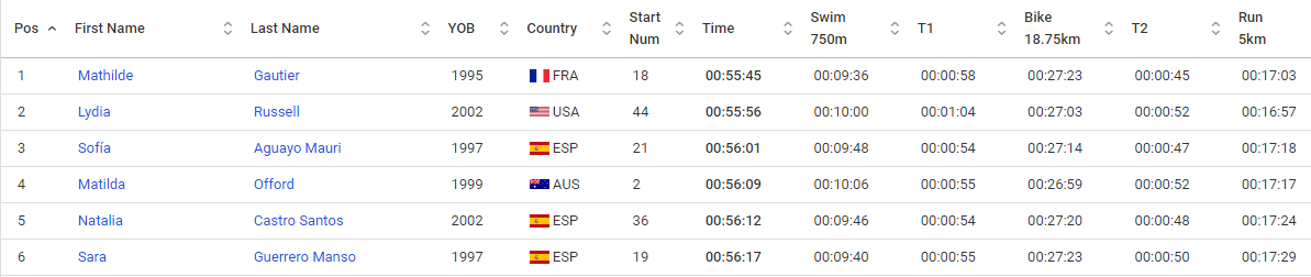 La deportista del Prat logró una marca inferior a la hora (56:01 minutos) por detrás de la estadounidense Lydia Russell y de la campeona francesa Mathilde Gautier. Las tres estuvieron a muy pocos segundos de diferencia en un ajustado final.