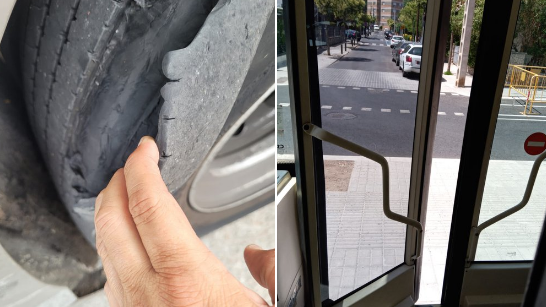 Su queja se centra en las condiciones inseguras que muestran los neumáticos del autobús.